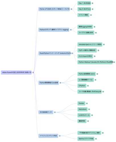 はじめに 七尾百合子さん、お誕生日 201日目 おめでとうございます! nikkieです。 9月のふりかえり記事です。 8月はこちら 目次 はじめに 目次 NotebookLM 製 Podcast をどうぞ PyCon JP の熱気 Rust と Python を組合せる挑戦 logging モジュールとの格闘 …